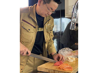 お昼時の社員食堂のお姉さんの周りでは、社員さんが子供のように料理をのぞき込んで話しかけ、夜はドライバーさんが釣ってきた魚で刺身や鍋を作ったり、みんな家族のように過ごしています。